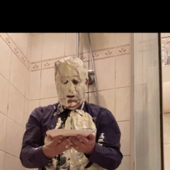 JustJade was surprised by mhop with a big sloppy cream pie to the face